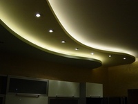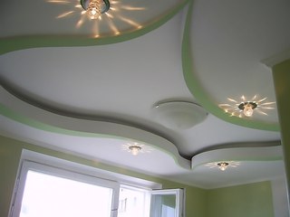 Накидать скелет каркаса, поставить перемычки, прикрутить листы – это все ясно. Сделать один уровень потолка из гипсокартона весьма просто. Но что делать, если жена хочет «эдакую завитулину», или дочь говорит, что надо бы «вот тут ободок такой, а внутри лампочка светится, я у подружки видела»? Заказать такую работу можно в любой строительной фирме.