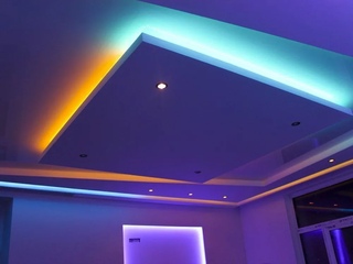 В покрытия из гипсокартона монтируют разнообразную подсветку, что делает его сногсшибательным.