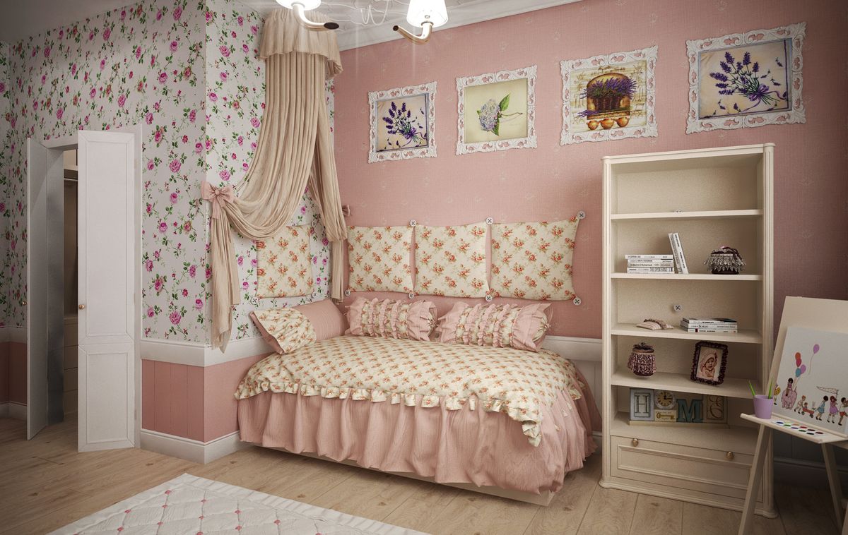 Красивая детская комната в стиле прованс для девочкиРозовая комната в стиле прованс для девочкиСовет! Используйте в дизайне детской в стиле прованс мягкие светлые тона. Они придадут помещению уют, сделают его светлее и просторнее.