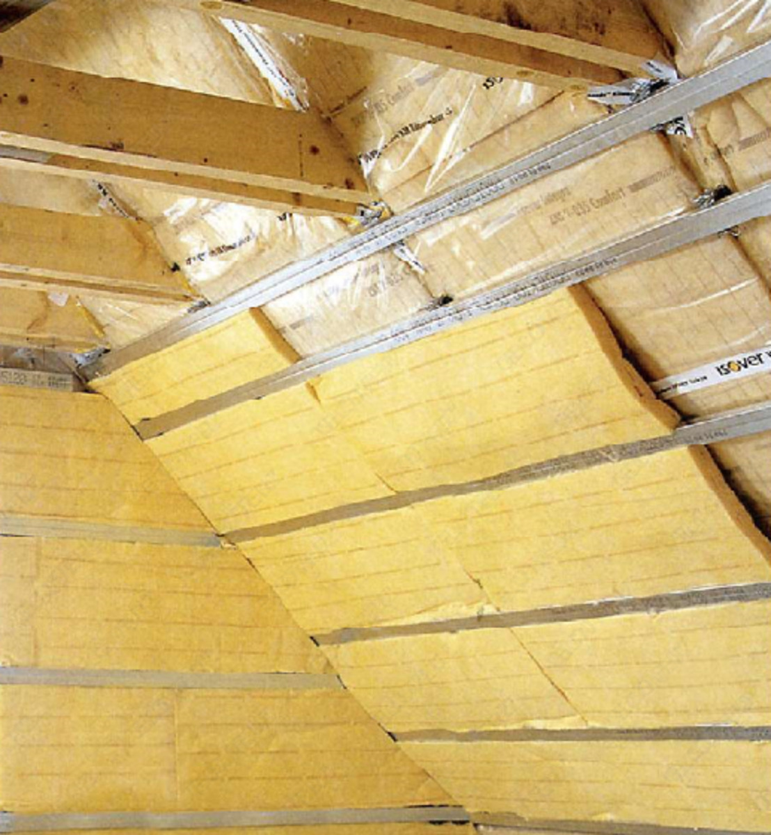 При укладке утеплителя нужно оставить небольшой зазор. Такая воздушная прослойка обеспечивает беспрерывную вентиляцию;